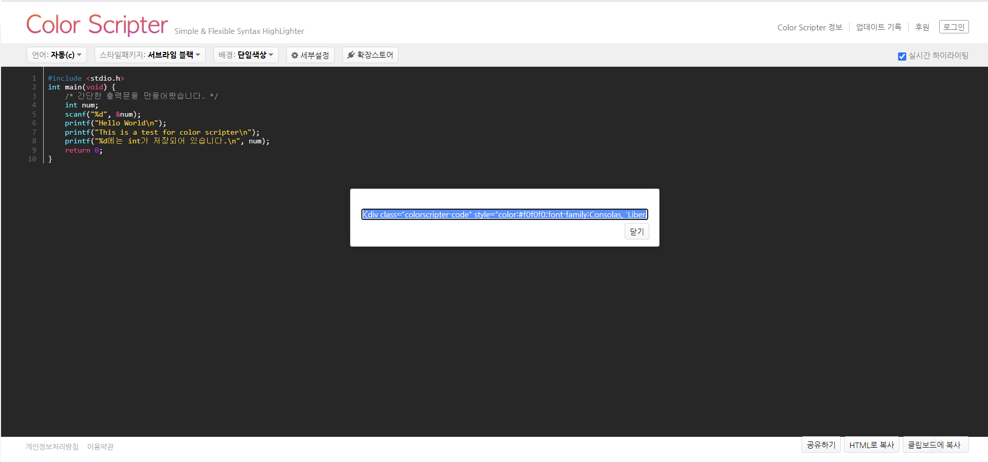 4단계: 이제 스타일이 바뀌었으니, 오른쪽 아래에 있는 "HTML 복사"를 눌러서 해당 코드를 "HTML" 형태로 복사를 한다