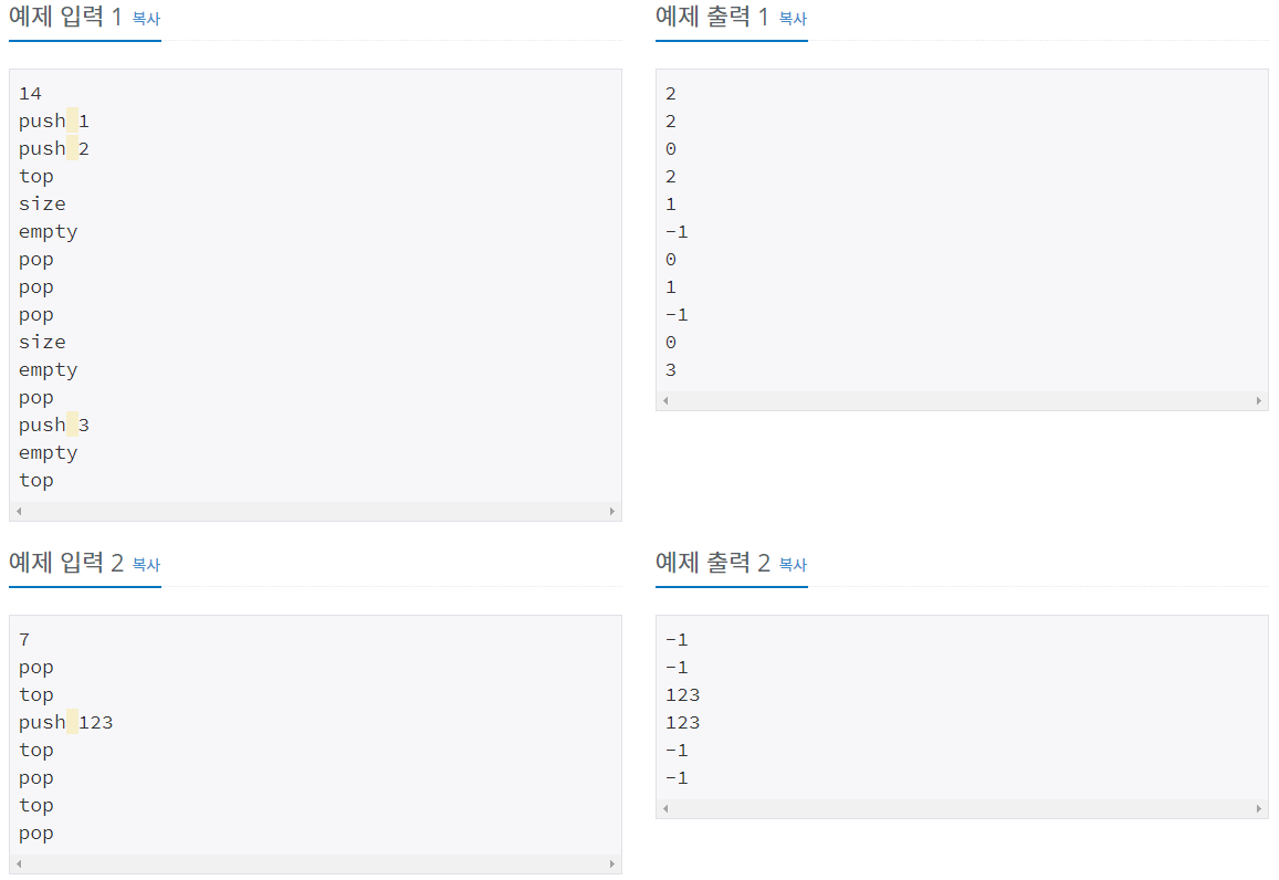 우선 간단히 스택 구조에 대해서 정리해보자면, 스택(stack)은 LIFO(Last In First Out) 구조이다. 즉, 가장 최근에 스택에 추가한 항목이 가장 먼저 나오는 항목이 된다. 아마 C/C++로 했으면 코드가 길어