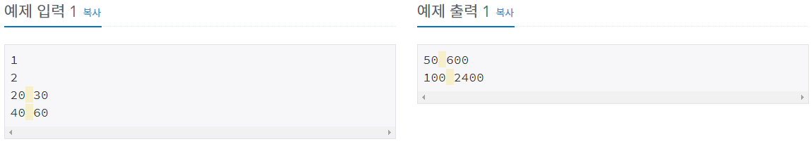 첫 번째 입력 T(test case)가 살짝 설명이 이상하다고 느낄 수 있는데, T는 무시가 되는 것이 아니라 2번과 나머지 입력값에 대해서 반복을 몇 번 할 것인가에 대한 입력값이다.