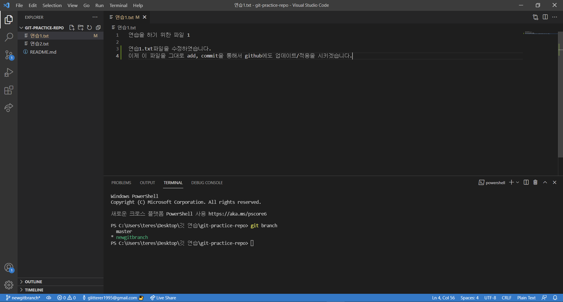 1. git branch로 내가 바꾸고 싶은 branch를 가리키고 있는지 확인해본다.